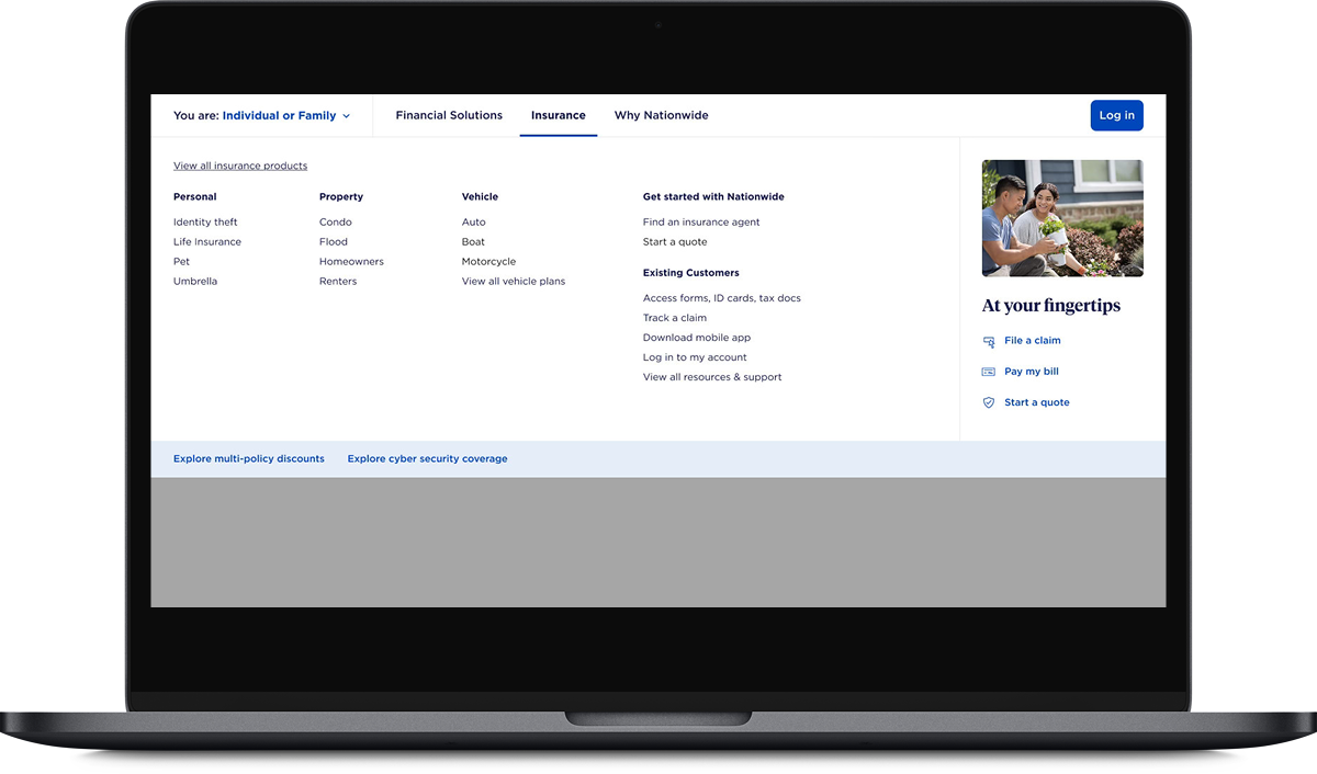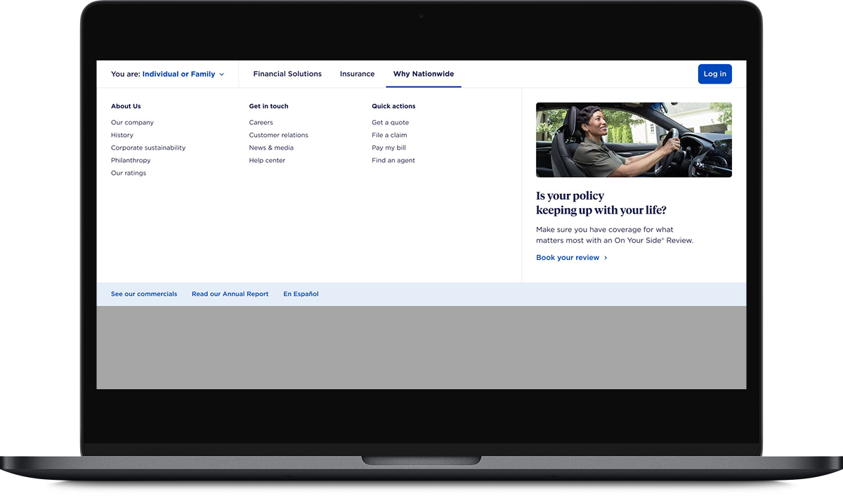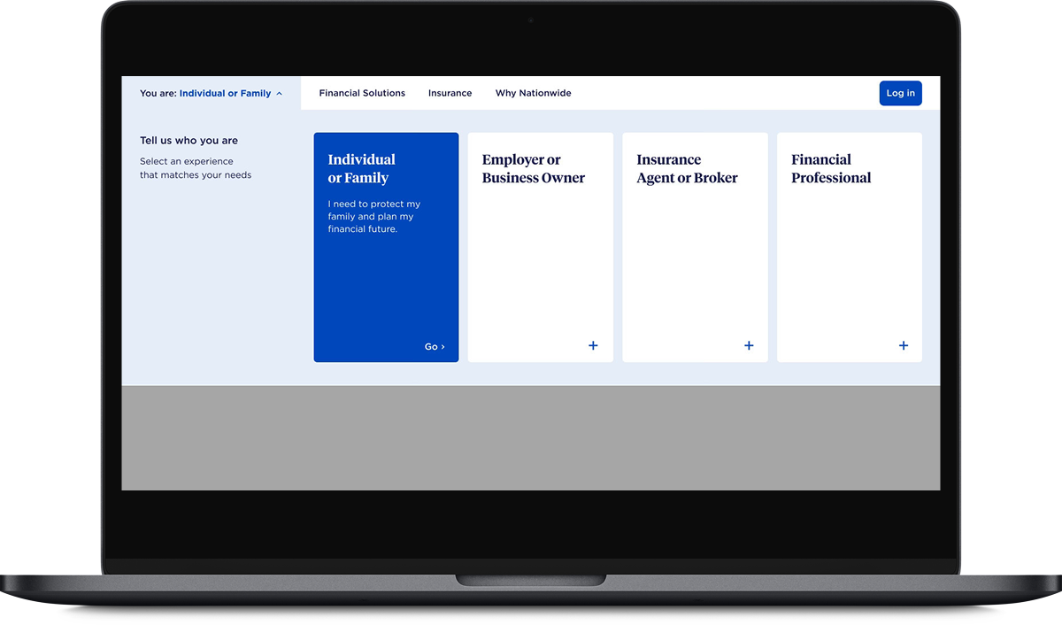 I led competitive and current state audits of Nationwide’s current website as well as the sites of their direct competitors. I facilitated a design workshop with key Nationwide stakeholders to surface existing pain points, align on goals, and establish constraints. That foundation directly shaped the wireframes for the homepage and navigation. The wireframes allowed us to work through how to make the navigation more intuitive and the homepage layout more streamlined, while keeping the overall experience familiar to existing users. My team then developed style tiles to explore visual directions before moving into high fidelity designs.