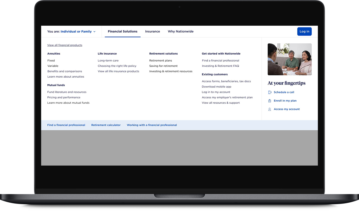 I served as design director on the Nationwide account from the pitch process through final delivery. Our challenge was to create a more intuitive navigation experience, and redesign the Nationwide site while staying within existing brand guidelines.